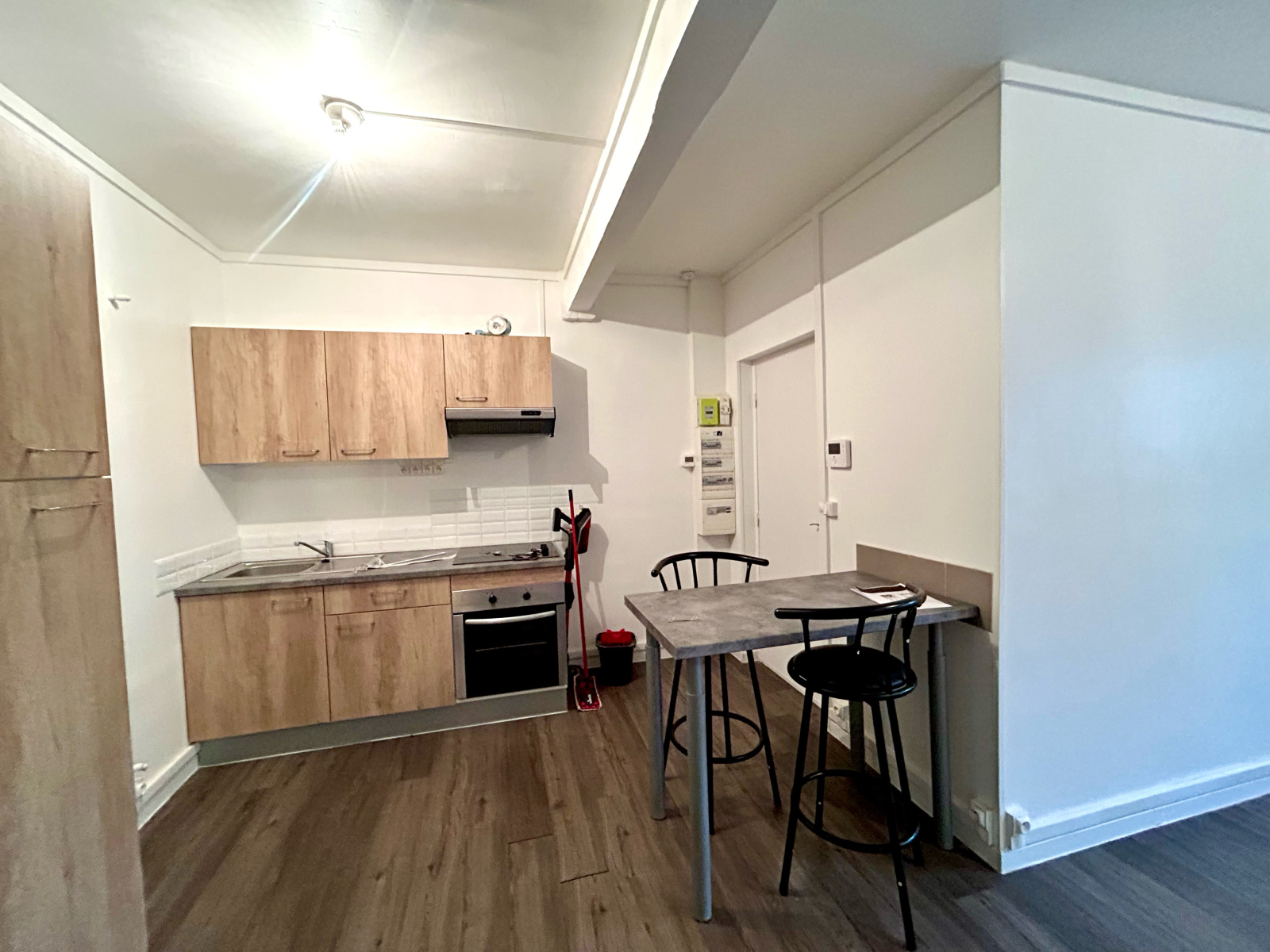 En hyper centre, T2 au 1er étage, disposant d'une pièce de vie spacieuse avec cuisine équipée, chambre avec salle de douche, wc séparés, buanderie, terrasse de 45m², parking sécurisé. Chauffage individuel électrique. Eau froide et Tom sont comprises dans les charges. Disponible fin novembre