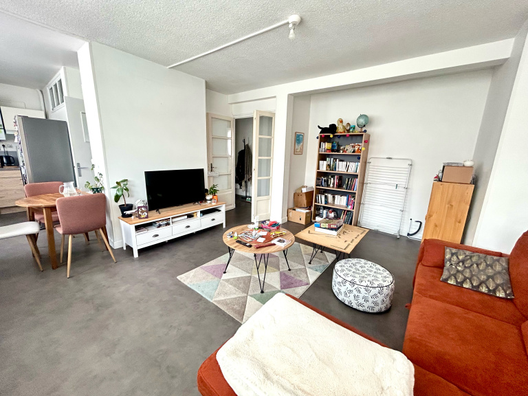 T3 de 66m² avec loggia et parking extérieur sécurisé Situé au 2ème étage iIl offre une entrée, un séjour lumineux, une cuisine ouverte et équipée, deux chambres, une sdd, wc séparés. Grenier. Chauffage individuel gaz. La taxe d'ordures ménagères et l'entretien des communs sont compris dans les charges.