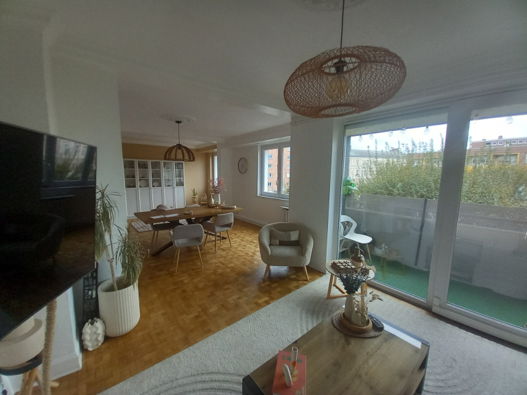 Place de la république, T4 de 118m² avec une belle vue dégagée offrant une entrée, un vaste salon de 40m², une vaste cuisine séparée équipée donnant sur une loggia, 2 chambres et grand bureau, une sdb ,wc, Nombreux rangements, un balcon. Chaudière individuel gaz.neuve. Grande Cave Disponible fin novembre