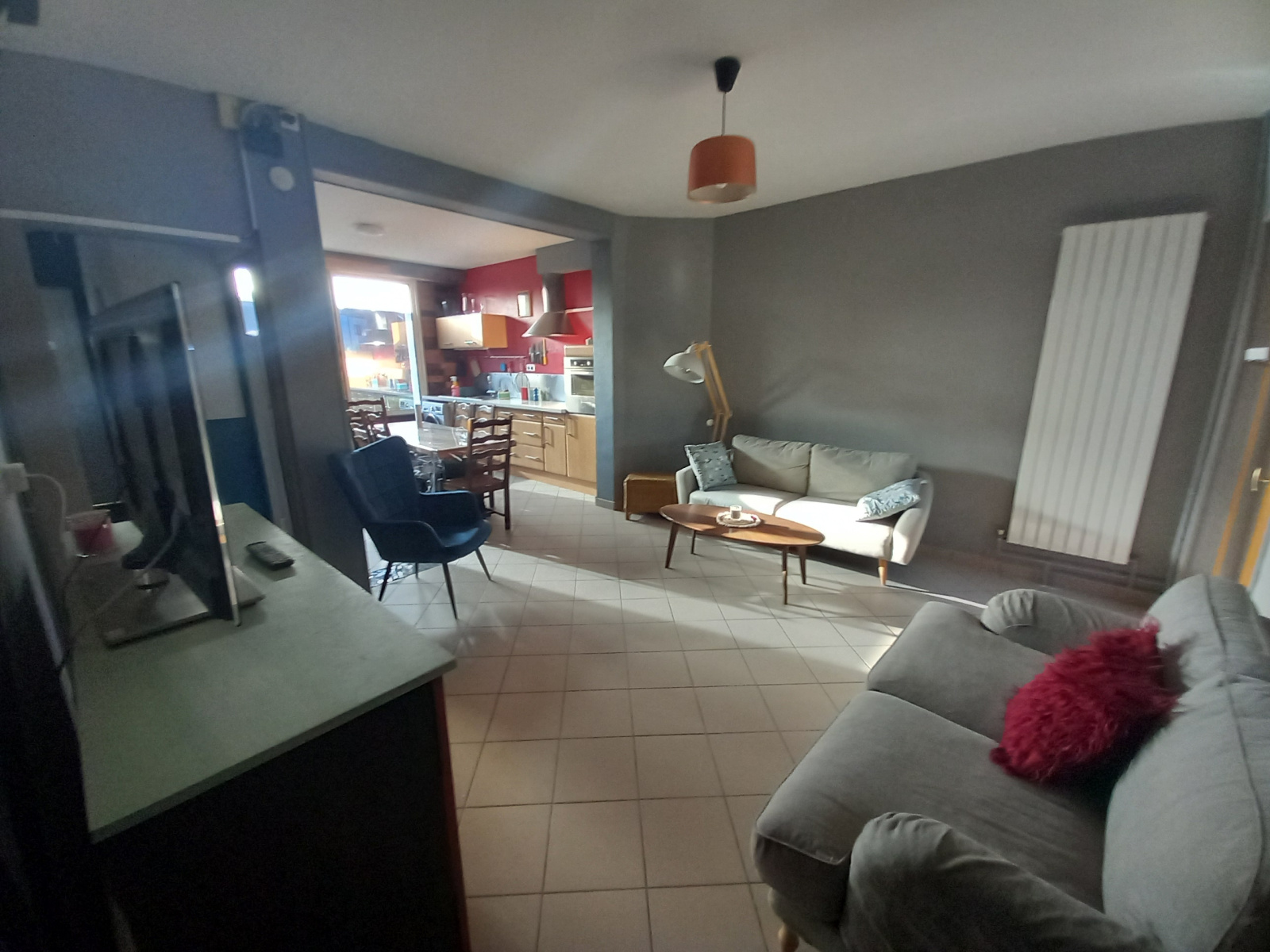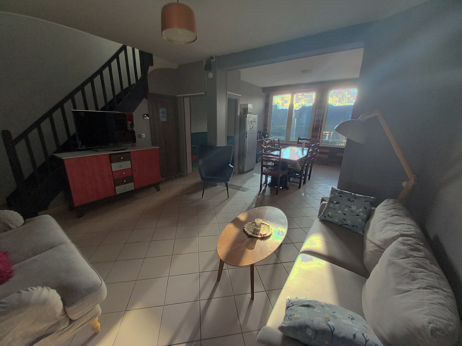 Maison de ville meublée offrant une entrée, salon, cuisine entièrement équipée, 3chambres avec lit double, une grande salle de jeux ou bureau, une sdb. Cour.